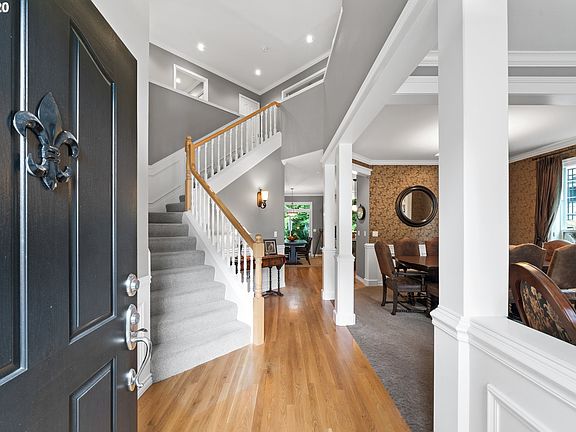 Beautiful Forest Heights setting with low Washington County taxes. This meticulously maintained 4-bedroom home features an updated kitchen w/quartz, custom cabinets, large island & dual-drawer dishwasher. Crown molding throughout; elegant wainscoting in the 2-story entryway & living/dining rooms. Owner's suite with 5-piece bathroom. Insulated, walk-in attic with storage galore. 3-car garage. Ultra-private rear patio features a relaxing fountain and backs to a forested greenway. Central air.