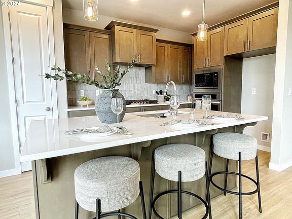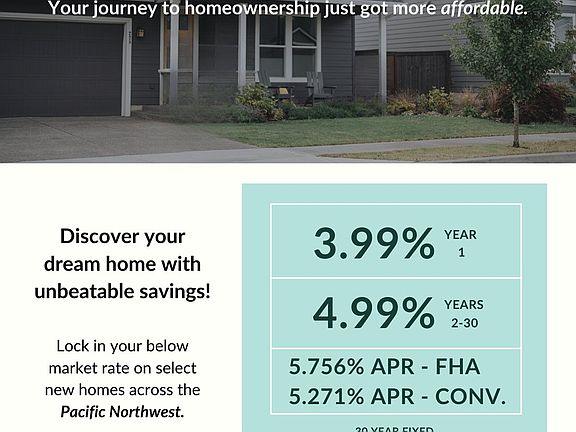 PROMO RATE as low as 3.99% the first year and 4.99% for the remainder of the loan with in-house lender! Ask agent for details. MOVE IN READY! Beautiful 3 bedroom home, 2.5 bathrooms, with a 2-car garage! Home features a great room with gas fireplace, 9ft ceilings on main level, quartz countertops, gas Cooktop, wood cabinets, a primary suite with walk-in closet, heat pump with A/C, front yard landscaping on a fully fenced level lot! PRICE ALSO INCLUDES: Refrigerator, washer/dryer, blinds, plus sod & irrigation in backyard too! Community features walking trails, green spaces, and park areas. Actual images of kitchen and living room - other rooms are sample images - actual finishes and colors will vary. PLEASE VISIT SALES OFFICE TO VIEW HOMES @ 117 S 87th Ave, Ridgefield, WA. Open daily 11-5.