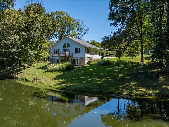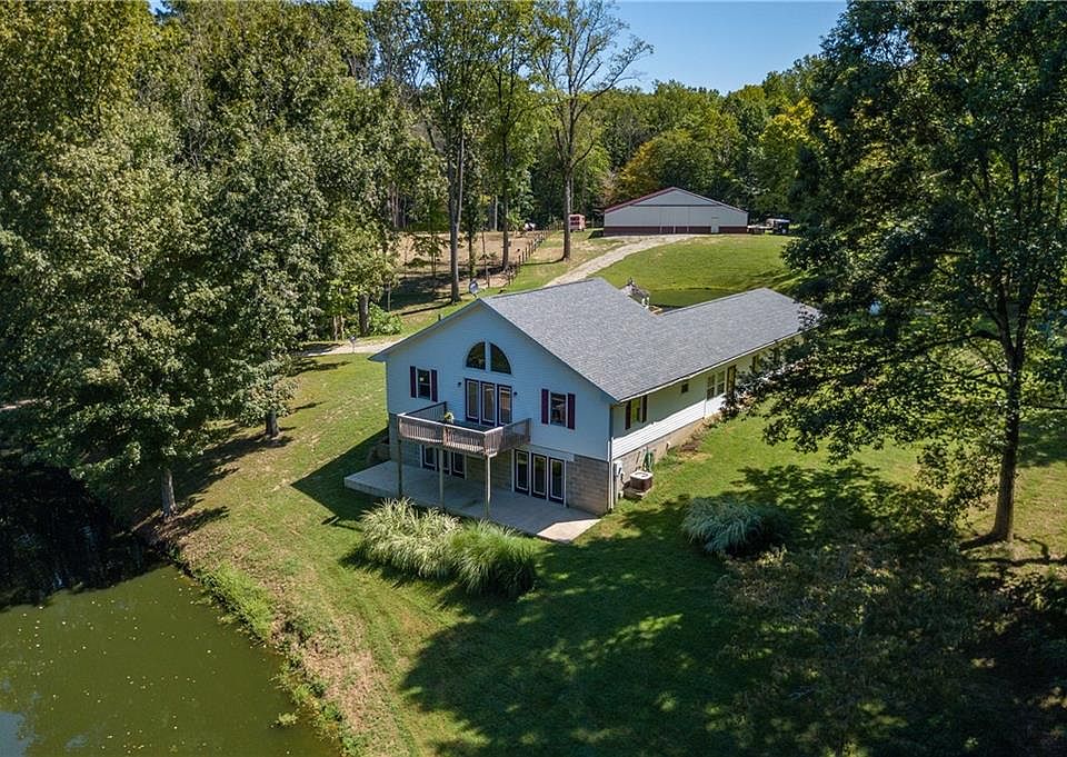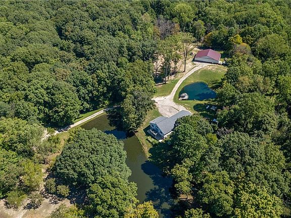Beautiful Private 9 Acres with home nestled between 2 small spring fed lakes. Huge 40 x 64 Pole Barn w/2 stalls and tac room w/water and electricity. Home is a 1 bedroom on a 3 bedroom septic-Huge walkout basement with 2 extra rooms. 3 car garage attached with breezeway. Has 10 ft. ceilings. Indian Creek Schools.