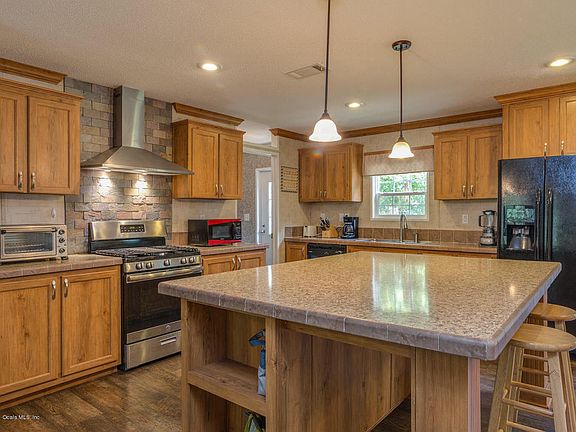Country living at its best! Must see - like new fantastically large 5 bedroom, 3 bathroom home on 5 wooded acres. Easy commute to Gainesville. Quality custom Live Oak manufactured home. Split plan with four bedrooms and two baths (one jack-n-jill) on one side. Formal living room opens into the chef's kitchen complete with gas range, huge island, cabinets galore, and laundry room with pantry. Room for a large dining room table. Wonderful family room with wood burning fire place. Master suite includes space for a sitting area or desk, walk-in closet, and spacious bath. The master bath has a double vanity, soaking tub, and separate walk-in shower with built-in bench and rain shower head. Large storage shed with deck and fire pit in back yard.