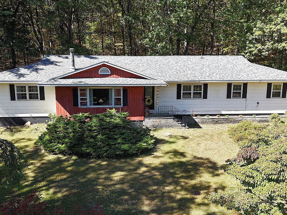 This remodeled mid-century ranch just outside Callicoon on 3+ acres lets the home do the talking without a made-up moniker! Pull up into the paved driveway and you'll think you're visiting a park. The home is surrounded by majestic oaks and many other trees; its back yard is level, perfect for a garden or outdoor activities. There's a fenced area for kids' safety or use it for your pets or a garden. The front of the home features beautiful blue-stone rock work. But step inside, and you'll find a mystical, magical getaway, where the owners' artistic imaginations have come to life! You'll love the whimsy... from the happy paint schemes, the garage-turned art studio (but use it for vehicles if you want!), unique coffee bar, and tin board behind the woodstove. If you enter from the garage/art studio area, you'll find a cheery laundry area. It's large, so it's a great mud room too. This area has the half bath. Continue into the spacious kitchen, with lots of cabinet/counter space. It has an electric cooktop and separate oven. Eat-in here, it's large enough! Or take a couple steps into the dining room-- it's flooded with light. The living area has been opened up, so you don't feel closed in. A woodstove throws lots of heat for extra warmth in the winter. There are 3 large bedrooms with gleaming wood floors, good closet space, and a full bath in the hallway. The screened-in back porch expands your living space, and it can be used for whatever you'd like: outdoor dining, studio, work-out room, kids' playroom. The options are endless. The back yard is surrounded by trees, ensuring privacy. The full basement is another wonder-- clean, spacious and well-lit so you don't have to be afraid of it. Finish it off if you'd like-- a game room, family room, kids' playroom or in-home gym are just a few of the possibilities! Everything serious and big-ticket has been done for you: new roof and septic tank in 2023, paved driveway. Such a great central location: You're a 3-minute drive to the happening hamlet of Callicoon, with Delaware River access, its Sunday Farmers Market, delicious eateries, movie theater, bowling alley (coming soon!), and stores. 15 minutes to Narrowsburg and Bethel Woods. Check this place out and find out how great it is to live with clean air and star-filled skies!