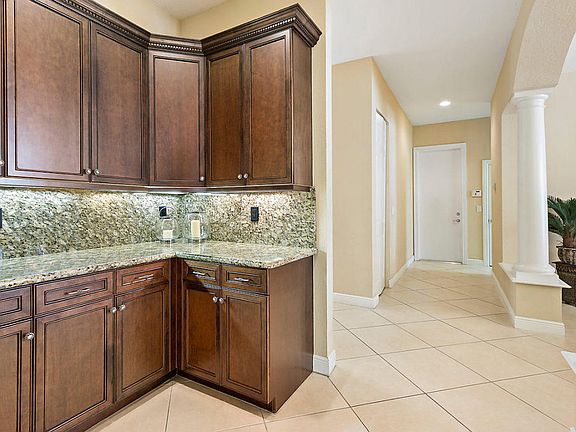 Well-appointed 5 bedroom, 5.1 bath Julian model with a 5,595 SqFt open floor plan. Upon entering you are welcomed by a formal living room with a dramatic 2 story ceiling and massive windows that provide a breathtaking view of the custom pool with water features and lush tropical landscaping. Chef's kitchen with stainless steel appliances, double ovens, above and below cabinet lighting, granite countertops and backsplash, a huge granite island, and a family dining area. Spacious master suite with a separate sitting room and a his and hers walk-in closets. Elegant master bath with granite counters, a garden tub, and a walk-in shower. A covered balcony, coffered ceilings, wet bar, butler's pantry and a gorgeous custom staircase are just a few of the features that complete this dream home.