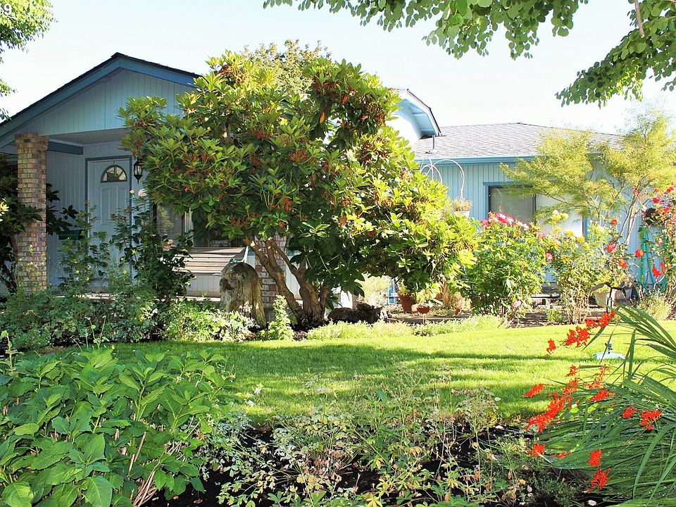 Lovingly maintained 3 bedroom, 2 bathroom home on a corner lot. Vaulted living room w/ 2 large windows that provide great natural light. New roof, gutters & paint. Kitchen is open to the vaulted dining room. Nice laminate floors. Master bedroom has a walk in closet & full bath. Backyard features a greenhouse, shed, raised flower beds, & a lg covered patio perfect for entertaining. Beautifully landscaped front yard. RV Parking.