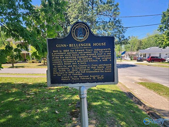 This is beautiful piece of history is Gadsden. Placed in the National Historical Registry, the 'Gunn-Bellenger House' features 5 fireplaces, original hardwood floors, gorgeous original stained glass windows and mansard roof. The workmanship and craftsmanship is to something to see. Carved barreled wood ceiling partisan in foyer, there are too many architectural gems to mention. By appointment only.