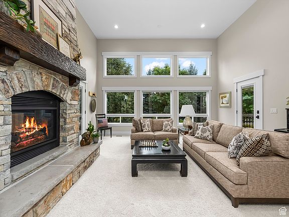 Designed and built by well-known luxury home builder Samson McGinnis as his own residence, this custom-crafted home showcases the artistry and detail he is known for in Park City's most stunning mountain settings. Every detail has been thoughtfully designed, blending timeless architecture with modern comfort in a serene, wooded cul-de-sac setting. Inside, the heart of the home is anchored by a dramatic double-sided natural stone fireplace that warms both the living and dining areas. The peaceful living room rests beneath soaring vaulted ceilings, with expansive panoramic windows that frame views of mature trees and fill the interior with light, while indirect skylights add a soft glow throughout. Custom finishes abound, from board-and-batten detail and iron stair rails to the home's striking architectural lines that carry seamlessly from the interior to the exterior. Your gourmet kitchen is a chef's dream, featuring a Viking refrigerator, and high-end appliances like the oversized commercial six-burner gas range with griddle, commercial hood, double ovens, a built-in ice maker, dishwasher, and a farm-style stainless basin sink, along with a central island for prep and serving. Just off the kitchen, the dining room flows easily for gatherings and opens to a private covered deck, creating an ideal indooroutdoor living space. Main-level living makes life simple with the owner's suite, kitchen, laundry, and a private office all on the main floor. The owner's suite includes a freestanding soaking tub, a modern walk-in shower, dual sinks, a large walk-in closet, and private deck access. Every bedroom in the home features a walk-in closet, providing ample storage and comfort. Downstairs, the daylight walkout basement offers bright, open living with a large creative studio/craft room, a theater with wet bar and fridge, a playful nook under the stairs, and a warm, radiant-heated, stained concrete floor. Thoughtful details include lightwell windows with lush greenery and a walkout to a quiet sunken patio that is surrounded by beautiful plantings creating a tranquil garden escape. Outdoor living is seamless with multiple covered decks and patios, including the sunken patio framed by vibrant plantings that offer a tranquil, private escape, a private covered dining area, a covered deck connecting the living room and owner's suite, and a generous front porch with direct access into the foyer, garage, and office. The yard is a secluded haven with lush mature landscaping, a fenced garden, and the natural beauty of deer and wildlife passing through. Additional highlights include a three-car garage with a tandem bay that provides space for a fourth vehicle or RV storage, along with an EV-ready 220 outlet, abundant storage throughout the home, whole-house in ceiling audio, and a custom shed designed to match the residence-all set on one of the community's most peaceful lots. The Dutch Fields community offers a lifestyle as enriching as the home itself, with a swimming pool, playgrounds, tennis and sports courts, a clubhouse, and quiet walking paths past ponds and seasonal streams. Large open spaces and grass play fields make this a truly unique neighborhood where nature and the friendly community come together. This remarkable luxury home is just 10 minutes from the Jordanelle Gondola and Deer Valley East Village, 20 minutes to Park City, and 40 minutes to Salt Lake City International Airport-making it the perfect blend of seclusion, community, and access. Just beyond your doorstep, enjoy fly fishing in the Provo River, Dutch Hollow hiking and mountain biking trails, and year-round recreation in Wasatch Mountain State Park-including camping, golf, horseback riding, cross-country skiing and snowshoeing, and ATV/snowmobile trails. Schedule your private tour today and experience a home where luxury meets nature.