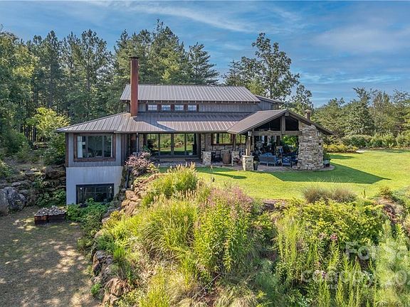 Dreaming of your own one-of-a-kind mountain home in the Blue Ridge Mountain foothills w/natural water sources, extreme privacy, & gorgeous long-range views where you can escape from the world into your own secluded retreat? Nestled amongst 20+ acres w/incredible views of Craggy Pinnacle, Mt Mitchell, & Hickory Nut Gorge, the exterior is clad in a warm mix of cedar shakes & metal roofing, board & batten siding & stone. Massive reclaimed heart pine timbers, oiled Mankato & Tigerwood floors, concrete countertops, & a steel staircase bring unparalleled warmth to the interior. Over 1200sf of covered porches, custom fireplace, pizza oven, grilling bar, & sliding windows connecting the chef's kitchen to the outdoors. Mountain views extend through the main level bedroom suite with en suite bath that's to die for. You'll love the large unfinished basement, oversized drive-through double garage w/work area & no-step access to the front & rear yards as well as the back porch.