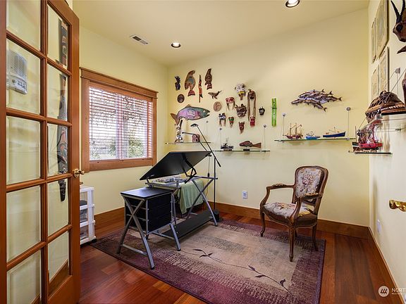 Exceptional 1-story custom waterfront craftsman, complete w/40' shared dock! Entertain with ease & enjoy starry nights on your wonderful garden patio overlooking the marina. This immaculate residence provides a brilliant light filled living experience, w/glistening american cherry hardwoods & beautiful wood detailing throughout. Expansive gourmet kitchen unites function w/exceptional design; double ovens, Viking cooktop, wine fridge, oversized island, breakfast bar, pantry, work desk, plus an amazing amount of storage. Generous Primary w/ensuite offering elegant marble, heated flooring, soak tub & walk-in. Perfect guest bedroom w/ensuite 3/4 bath, plus office/den. A/C, delightful mature landscape & tons of storage in this 947sqft garage!