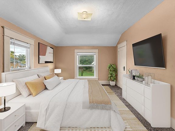 Freshly updated and ready for next owner or investor. Rare 5 bedroom 2 full bath home. Main floor offers 2 bedrooms and 1 full updated bath. Main floor primary bedroom even features private sitting area, perfect as owner/guest suite. Upstairs has 3 more bedrooms and 2nd updated full bath. Original hardwood floors were refinished and stained, all trim and walls painted, all flooring including carpet and vinyl replaced, and the kitchen given a refresh with stainless steel appliances too! Off street parking in back for multiple cars or future garage. Many windows have been replaced too! This home was previously rented. $1250/mo would create great cash flow for investors. City of Benton Harbor has low 25.4018 millage rate and LMCU can offer 100% financing with its Home Plus Loans to qualified buyers. The enclosed front porch is so cute with its paint colors - not heated but has electric outlets and charm. Easy distance to High School and 3 miles to Lake Michigan beaches and beach town. Additional highlights are the stainless steel appliances and new vinyl flooring and white kitchen cabinets. The floor plan of kitchen would make for an easy and inexpensive update if you want to add cabinetry or move the appliances around. Basement is clean, freshly painted, and dry and offers a utility sink plus connections for laundry. Yard is partially fenced and a nice retreat. Under 3 miles to Lake Michigan and popular Silver Lake Beach and downtown St. Joseph beach town.
