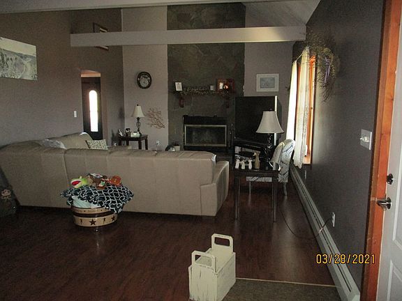 Be at home in this adorable modified cape on 10.2 acres. Walk in to the large living room with beautiful stone fireplace as your focal point! Formal Dining Room with plenty of room for family dinners. 2 roomy bedrooms on first floor with full bath and up stairs a huge master bedroom walk in closet and full master bath. Decorated beautifully inside and out. Full usable basement if you want to expand. Acreage is mostly open with countryside views. 2 car detached garage. (acres and sq ft taken from assessment)