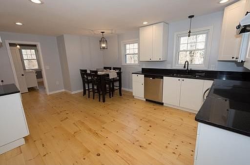 $10,000 PRICE REDUCTION!!! **QUICK CLOSING** NEWLY REMODELED and READY FOR OCCUPANCY!! Beautifully renovated Cape-style home with spacious 2-CAR GARAGE set on 1.54 ACRE lot. Nicely located in area of gorgeous homes with golf-course nearby. Inviting Farmer's Porch. Impressive Pine Wood Floors. Lots of natural light throughout. Light and bright open Kitchen with Granite countertops, stainless steel appliances and Dining Area. Flexible floor plan features First Floor MBR Suite with pine wood flooring and large full bath with dual sink vanity. Convenient First Floor Laundry. Relaxing 3-Season Sun Room with original slate floor. Bring the entertaining outside on the deck with built-in bench. NEW septic system, NEW well, NEW roof, NEW plumbing, NEW water heater, and updated electrical, per owner. Circular driveway. Easy access for commuters. Fantastic Lunenburg Opportunity!! Motivated Seller!!