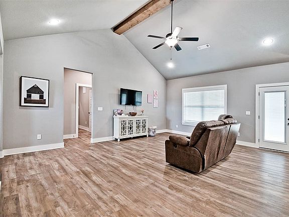 3BR/2BA Beautiful brick home in the heart of Prairie Grove in the quiet Mountain View Estates Subdivision - 1,646 SF quality built brick and vinyl home. Many amenities including granite countertops, custom cabinets and vaulted ceiling with beams and pantry. Ceiling fans in the bedrooms, living room and the back patio. Luxury vinyl plank flooring for durability and easy to clean waterproof floors and granite countertops. Sodded yard and wood privacy fence in back. - Agent related to seller