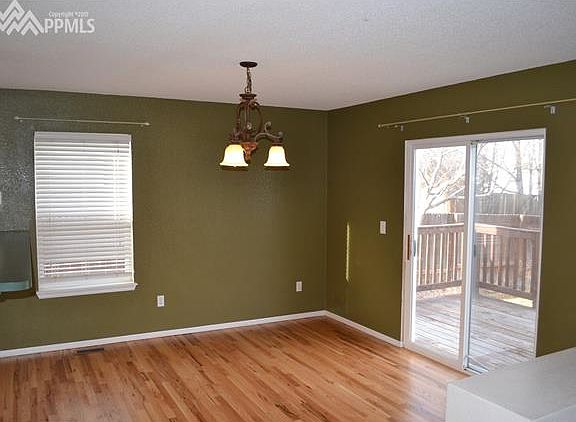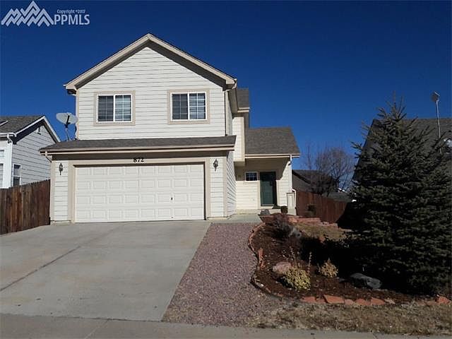 This two-story home boasting 3 bedrooms, 2.5 bathrooms and a 2 garage has new interior paint and beautiful newly refinished wood floors. Enter into the family room with awesome vaulted ceilings and plenty of windows for the sunshine to in. The large open kitchen includes all appliances and a great breakfast bar! Finish the basement to your liking or great for the kids to play! This home is nestled in the established Heritage community on a quiet cul-de-sac near parks, trails, Fort Carson and easy access to the highway.