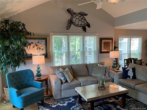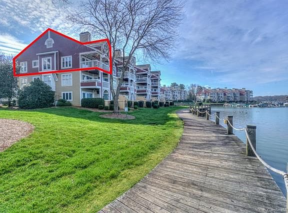 One of the best locations and lake views in Davidson Landing. This three bedroom two bathroom condo is located in the Stone Bluff complex. Condo is leased fully furnished with all utilities included. Short term rental available to lease for 6 months from 11/1/2020 to 4/30/2021. The end unit location provides a lot of extra windows and light. Very nice updated condo with newer windows, sliding glass doors, and HVAC system. Kitchen has granite countertops and stainless steel appliances. Wood floors through out the kitchen and great room area. The master bathroom has a large walk in shower and a dual vanity. Wet bar area between kitchen and great room. Third floor provides vaulted ceilings in the great room area and the master bedroom. Enjoy the sunset lake view from the large porch that can be accessed from both the great room and master bedroom. Amenities include the lake, pool, tennis, fitness/walking trails, restaurant, boardwalks, and leased boatslips.
