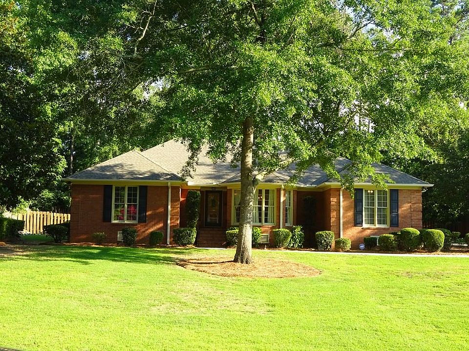 Welcome to popular NORTHWOOD! It's rare to find a RANCH home, but it's here. A 4BR/3.5BA all brick home in the heart of Evans is ready for YOU! Aside from the split floor plan, this home offers a mother-in-law suite with its own large bedroom, full bathroom, and side entrance from covered porch. The Owner's suite is on the opposite side of the home with his and hers marble vanities and his and hers walk-in closets, jacuzzi tub/separate tiled shower, walk-in closet, linen closet and water closet. Secondary and third bedrooms are spacious and share a complete hallway bathroom with tub/shower combo. Enter home on hardwood floors, vaulted ceiling in great room, trey ceiling and bay window in dining room, kitchen with silestone counters, island/cook top, desk/shelving, self-cleaning oven & microwave, generous counter space, tiled floors and eat-in breakfast area. Entertain on back deck with picturesque backyard and privacy fence. Side entry dbl attached garage with long driveway,