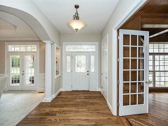Welcome to this stately two-story home nested on a cul-de-sac & backing to a park like setting with mature trees. The large front covered porch adds to the charm of the exquisite elevation of the home. Entering the home, you will find a warm entry that flows to a office/study with wood accents floor to ceiling. The natural light that filters through the dining room will be the perfect place for hosting. The stylish butler pantry/wet bar is perfect for entertaining. Kitchen boasts of 42" cabinets, center island, hearth room/breakfast room w/gas fireplace that can be opened to the large screened in porch. Step outside to the sprawling deck that stretches across the back of the home and walks down to the beautiful in-ground pool salt water. The LL is perfect with a theater room & then snuggle around the fireplace w/full wet bar for your pleasure with walkout to the pool. Seller has contracted to have new roof put on the home. Bring us an offer to reflect your desired updates. Additional Rooms: Mud Room