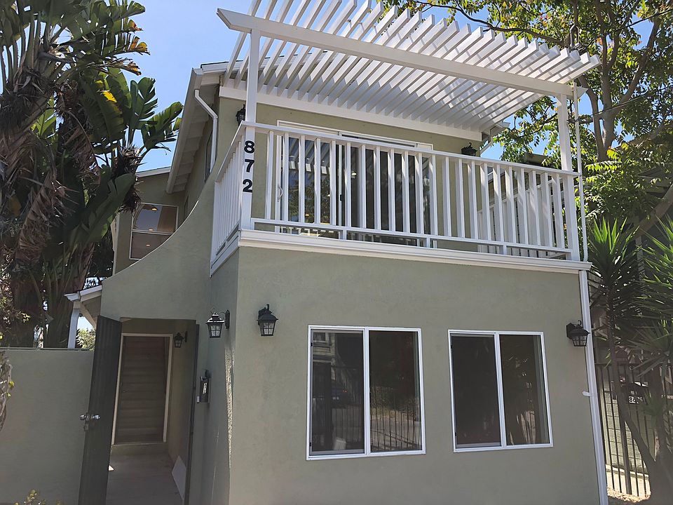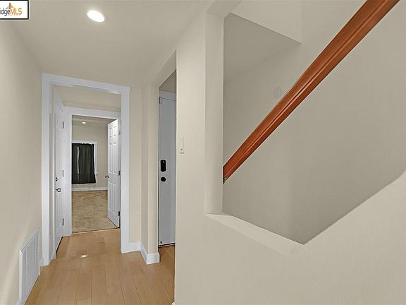 Spacious updated contemporary home within walking distance to West Oakland BART. On a lovely block with Victorian houses. The kitchen and great room are flooded with light with skylights, and the space flows organically to the roomy front balcony. The beautiful modern kitchen features stainless appliances, stone counters and a tile backsplash. Three carpeted bedrooms on the entry level, and one upstairs. Fully remodeled bathrooms on both levels. Tankless water heater and newer furnace. The laundry closet is on the entry level, and the back door leads out to a nice tree-shaded fenced yard. Great privacy, and a great transit location. The full house is wired for enterprise-level wifi!