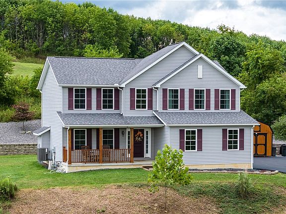 Come and see this custom-built, Schumacher home with an amazing view! Built in 2015 and situated on 1-acre property, this home has so much to offer. Relax on the covered front porch or have a fire in the spacious yard. The home has a fresh paint throughout, a new kitchen backsplash, and under cabinet lighting. Other upgrades include freshly paved driveway, large retaining wall, French drains and landscaping. The open, bright basement features high ceilings and offers plenty of room for a gym, entertainment and storage. The included shed has plenty of space and has additional loft storage. One year AHS home warranty included!