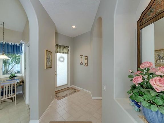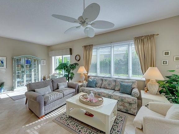 "It's all about the view, 'bout the view, no kidding!" Breathtaking water & golf course, maintenance-free home offering 2 bedrooms/2 baths plus den. Designer tile, neutral colors, spacious master, Roman shower, double vanities, updated kitchen with quartz countertop, stainless appliances (new in 2014), newer A/C and water heater, designer window treatments, fresh paint, private courtyard patio, maintenance-free neighborhood, walking distance to clubhouse and amenities, whew! This home is fabulous for a winter retreat when you just have to get out of the cold and enjoy breathtaking sunsets from your extended lanai. Nature at its finest when the birds entertain you on the water's edge, and a golf course view "to boot". No CDD fees, optional recreational fees including social, tennis and/or golf are available. This IS the Florida lifestyle. Association is painting exterior of home in 2015 and adding new exterior light fixtures - AT NO COST TO BUYER! Furniture package available too! Come see today.