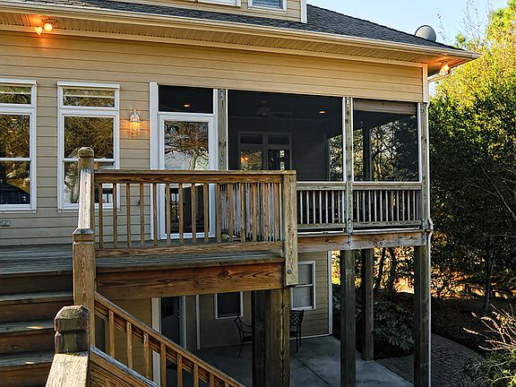 Call this immaculate sound front home yours! This partially furnished, beautiful & unique home has private dock with 5 ton boat lift w/ water & power, screened porch, hurricane/plantation shutters, hardwood floors, whirlpool tub, sits high on hill for amazing views & offers guest suite with private patio. Shopping, restaurants, theater, pool, tennis, boat parking, day dock & ramp all w/in walking distance. This lovely home is in immaculate condition & has never rented. 1yr HW in