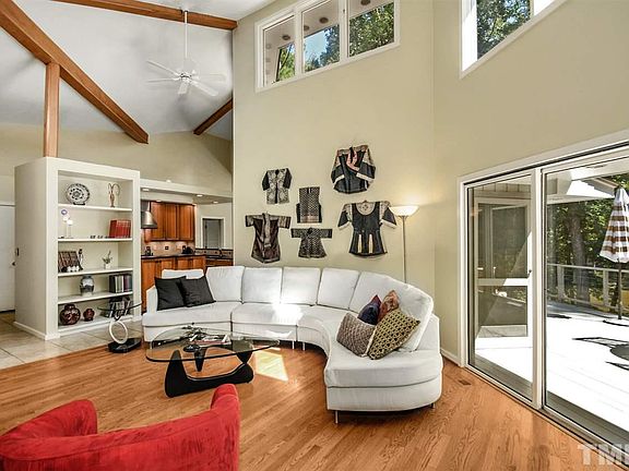 Designed by esteemed architect, KARL GASKINS. One of a kind, one-level Contemporary, graced by entryway fish pond. Incredible vaulted angled ceilings & windows! Chefs kitchen: Wolf range, built-in fridge, cherry cabs, granite, ss. Owners Suite: vaultd clgs, walk-in closet, lg bath, private deck. Large Laundry Rm! Flex spaces could be sep living area, craft rm, home gym...Ever-blooming yard w/Serenity Shelter overlooks POND/rear yard. WORKSHOP on lower level. SQUIRREL CONVEYS. Comm Pool, Tennis, Bsktball.