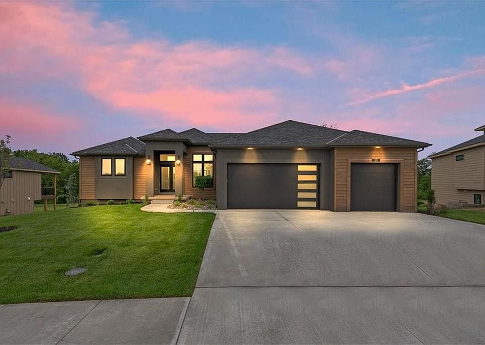Welcome to The Richmond by Syler Construction! This thoughtfully designed reverse 1.5-story home backs directly to Shoal Creek Golf Course, offering incredible views and luxurious living. Featuring 4 spacious bedrooms PLUS 1 to use as an office/nursery/playroom and 3.5 baths, this home is crafted with an upgraded trim package and high-quality four-sided exterior construction. The open-concept kitchen offers a large island, granite countertops, and a walk-in pantry, ideal for everyday living and entertaining. The walk-out lower level includes a generous family room and wet bar, perfect for gatherings or relaxing evenings. Enjoy the fully landscaped yard with an irrigation system and take advantage of unmatched community amenities, including multiple swimming pools & water park, expansive park and playground, scenic & serene walking trails, two beautifully appointed clubhouses... and all this with easy access to KCI Airport, schools, restaurants & shops, medical, and downtown Kansas City via major routes: I-435, I-35, I-29, MO-152, and MO-291. Open Thursdays-Mondays from 12:00-5:00 pm.