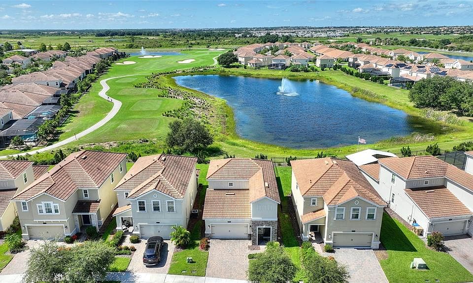 Welcome home to ChampionsGate Country Club! Central Florida’s Premier Resort-Style Golf Community. Full golf and tennis membership is included in the HOA, making every day feel like a vacation. This beautifully maintained two-story, three-bedroom, two-and-a-half-bath residence is perfectly positioned to capture sweeping views of the pristine golf course, tranquil pond, and illuminated fountain, creating a picturesque backdrop both day and night. Located just steps from the neighborhood pool and park, this home offers convenience and recreation right at your doorstep. The spacious primary suite is conveniently located on the main level, offering comfort and privacy. The open-concept living area features a generous family room that flows effortlessly to the screened-in covered lanai, ideal for relaxing or entertaining while soaking in the serene scenery. Upstairs, a versatile loft provides additional living space, perfect for a home office, media room, or play area. Offered furnished, with the option to purchase fully furnished, this home can be truly move-in ready for your immediate enjoyment. Enjoy golf cart access throughout this gated, resort-style community with world-class amenities, including: Oasis Club with restaurant, tiki bar, lazy river, multiple pools, fitness center & more. The Plaza – a residents-only clubhouse with restaurant, bar, pickleball, and two pools. The Retreat Club – a brand-new, full-scale water park HOA includes: full golf membership, access to all clubs and amenities, tennis, pickleball, $75 monthly food credit, gated entries, lawn care, cable, internet, phone, security monitoring, and more. CDD and trash are included in the taxes. Just minutes from Disney, shopping, and dining, this is resort living at its finest.
