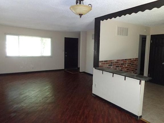 Living room and dining room with hardwood floors. Kitchen with a stove (tenant would need to provide refrigerator) 3 bedrooms 1 bathroom 1 car garage Washer/Dryer hook-ups Gas Heat and Central Air. No Utilities Included.