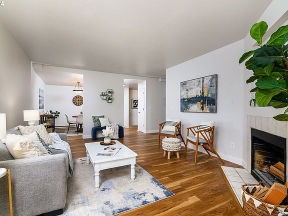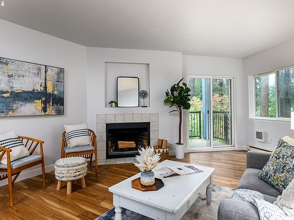 Extremely adorable condo located in the heart of the highly desired Tualatin! Home has been tastefully remodeled. Cozy up by the wood burning fireplace in this spacious living room with high ceilings. Primary bedroom also features tall ceilings and a full ensuite bathroom with a walk in closet. Laundry room includes washer & dryer. Stainless steel kitchen appliances included. Private balcony off living area with storage unit. HOA amenities include pool, spa, secured parking with designated parking space + MORE. Exterior of condo recently updated-windows, siding, balcony. Pets allowed. No Rental cap.