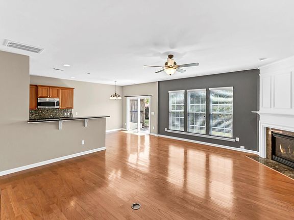 Available Now! Townhome in great North Raleigh location! Great schools, close to Brier Creek Shopping, I-540, RDU & RTP. Open floor plan w/ 3 large Bedrooms & 2 Car Garage. Hardwoods on main level. 2 Story foyer. Family room w/ gas log fireplace. Kitchen w/eat-in area, pantry, granite counters& upgraded appliances. Master bedroom w/vaulted ceiling, ceiling fan & large walk-in closet. Master bath w/dual sink vanity, tile floor, garden tub & sep shower. Community Pool. No Pets please. 9-12 months Lease Pool community
