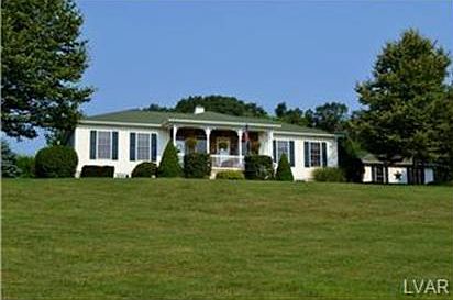 COUNTRY LIVING in a stylish "English Cottage" RANCH sited for beautiful views of Weisenberg Twshp. Wonderful OPEN CONCEPT home - first level has 2 MASTER SUITES, a great kitchen w/breakfast bar, dining area, half-bath. Enjoy entertaining on the large patio w/well-built pergola and stone knee-wall. The beautifully-finished LOWER LEVEL has a HUGE family room which almost doubles your living space. There is another bedroom/office w/half bath, large laundry room, TONS of storage (several large storage closets and utility storage room). 5 ceiling fans. 9-foot ceilings. CAR BUFFS/HOBBYISTS will fall in love w/the historic BARN w/metal roof and siding and appreciate the fully-insulated 2-car garage near the house. Landscaping is well-done and easy to maintain. DRIVEWAY circles around the garage. FOOTER was poured under the patio for future expansion. Home is meticulously maintained, easy to schedule, shows beautifully. Only 2 miles from I-78 - quick access to major routes for easy commuting.