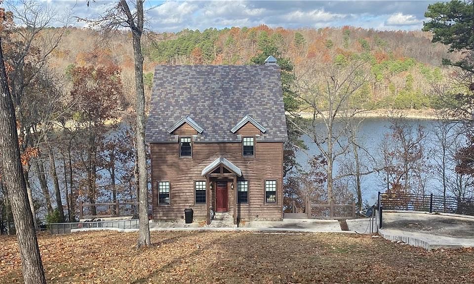 Coveted Lakefront Rustic Luxury! ONE-OF-A-KIND BEAVER LAKEFRONT Immaculate Chalet in a Quiet, Deep-Water Cove & LAKEVIEWS from Both Oversized Decks. Low Corp Line gives easy access to NEW RARE 4-Slip Private DOCK w/3 Lifts, Solar & Massive Swim Deck. This 3-level Cabin boasts 4 BR, 3 BA, plus Loft with Built-in Beds that sleeps 9 & features Soaring Ceilings, Incredibly Unique Custom-Designed Details & Finishes thru-out by two local Designers/Artisans, down to the smallest details. Local NWA barn incorporated in home adds to its charm & character. 2 adj Lakefront Lots=1.09AC. Enclosed Outdoor Full Bath offers a quick access from Lake. Hobbs State Park-owned land across the water allows All Natural Views of Cove. This one is Truly a Secret Treasure in Desirable Location on the Lake!
