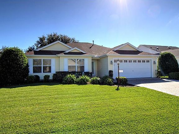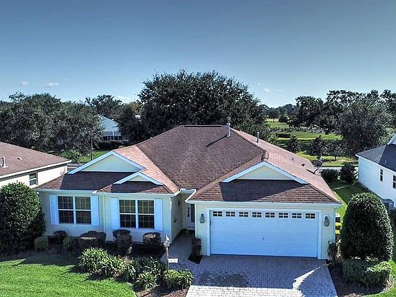 NO BOND on this Beautiful WHISPERING PINE Designer home with GOLF VIEW! This one-owner home is immaculate and very bright. Enjoy the serenity of the golf view from your spacious screened lanai, or outside patio. The OPEN Layout of this home is ideal for entertaining. The Kitchen, which was customized, features STEPPED-UP Cabinets, an abundance of Cabinets and Counters, Island, NATURAL GAS and the Refrigerator is just a year old! The cozy Breakfast Nook has Bay Windows with a wonderful view of the Golf Course. The main living area flows seamlessly from the Kitchen, adding to the SPACIOUS feel of this lovely home. There are Sliders from the Living Room to the Tiled Lanai - likely to be a favorite place of enjoyment. The Master Suite has a Large Walk-in Closet and the roomy Private bath has Dual sinks and Walk-in Tiled Shower. The Guest Bedrooms (one does not have a closet) and Bath will surely make your guests feel welcome! The Inside Laundry has extra Cabinets and Utility Tub. This home has many extras, such as PAVER Drive/Walkway, A/C REPLACED 2015, Solar Tubes, Attic Stairs, Painted Garage Floor, and Architectural Shingles! Located in the Village of Briar Meadow North (the "Quieter" side of The Villages) you are close to Lopez CC, Mulberry Rec. Ctr., Major shopping and medical! To view a Walking Video Tour, click on the "tour" button above the main photo. Tax line reflects property taxes only. CDD line reflects combination of annual maint. $501.25, fire $194.31 and waste/stormwater $97.57.