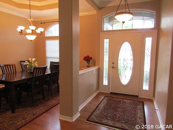 Welcome to Cobblefield-Thornbury, a G.W. Robinson community. Walk into a warm, welcoming yet classy home with upgrades you would expect. The foyer leads you into a formal sitting area with French Doors to the screened lanai. Windows through-out make it a light, airy home. Formal Dining Room has trey ceilings with crown molding, Living Room/Sitting Area has recessed lighting as well. Large well-appointed Master Bedroom has two walk-in closets with extra shelving. Master Bath has two vanity areas, soaking tub and walk-in shower. 3-way split bedroom plan; one bedroom set up as a stately office with built in desk, book shelves and crown-molding. Open Floor plan with family room and kitchen perfectly designed for family and friends. Screened Lanai has Summer Kitchen with built in gas grill and wet sink. Outside dining area with ceiling fans and hot tub. Fenced backyard for play space and privacy. Landscaped with mulched garden areas for easy maintenance. Laundry room includes wet sink and plenty of storage. Hardi-Board exterior for easy maintenance.
