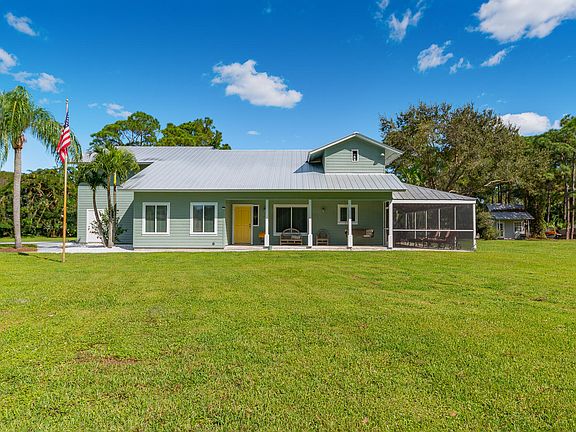 RARE FIND! For the first time offered to the public is this beautiful 3 bedroom, 2.5 bath home situated on over an acre on a cul de sac, and with NO HOA! Located in Tropical Farms in Stuart, there is no shortage of space, peace and privacy, yet it's just a short drive to convenience, shopping, and beaches. Features vaulted tongue and groove ceilings, tile and wood flooring, and spacious living areas filled with natural light, it's perfect for entertaining. Kitchen offers solid wood cabinetry, stainless steel appliances, and stone backsplash. A large master bedroom, with walk-in closet, and large master bath features a clawfoot soaking tub. Spacious guest rooms and a new updated guest bathroom with a walk-in shower. Walk outside to a private oasis with a fenced in-ground swimming pool, large screened porch, and plenty of yard space to use as you see fit - perfect for gardening/homesteading, storage, or building a separate garage/shop. No restrictions so bring your toys!