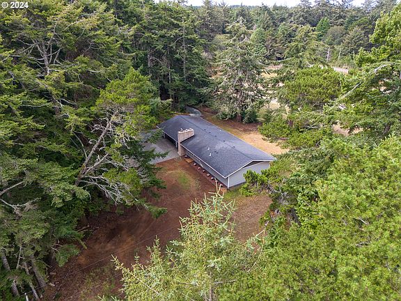 GOLF COUNTRY DELIGHT?! Discover a unique opportunity with this completely remodeled single-level ranch-style home, set on 3.57 serene acres adjacent to the proposed "Wild River Dunes Golf Course"—a potentially prized location for future world class golf. Ideally situated just a short drive to tee time at Bandon Crossings Golf Course and only about 10-15 minutes from the world-renowned Bandon Dunes Golf Resort, this property offers a blend of peaceful country living with easy access to premier golf destinations. The home has been meticulously remodeled from the studs, offering a spacious and inviting open layout with vaulted ceilings in the spacious living area and kitchen, which is a chef's delight, featuring a large island with gorgeous slab granite countertops, stainless steel appliances, custom cabinets and impressive yet durable LVP tile flooring, all complemented by hardwood floors throughout the remainder of the home. The living area centers around a custom electric fireplace set within a stunning floor-to-ceiling stone hearth, while an additional outdoor wood fireplace on the backside of the same hearth provides the perfect setting for enjoying the tranquil surroundings. The primary suite features a bright & beautiful bathroom featuring a tiled double shower. The home boasts lots of "new" - new roof, new siding and windows, exposed aggregate concrete walkways, parking pad and more. All surrounded by beautiful tall fir trees that enhance the private, natural setting and located near the end of a quiet county road. This home offers the best of both worlds—seclusion and privacy, yet just minutes from the charming town of Bandon, its pristine beaches, and all the area’s amenities. Whether you're a golf enthusiast, nature lover, or simply seeking a peaceful retreat, this property presents an exceptional lifestyle opportunity in a coveted coastal location with further possible upside of being parked next to potential future world class golf.