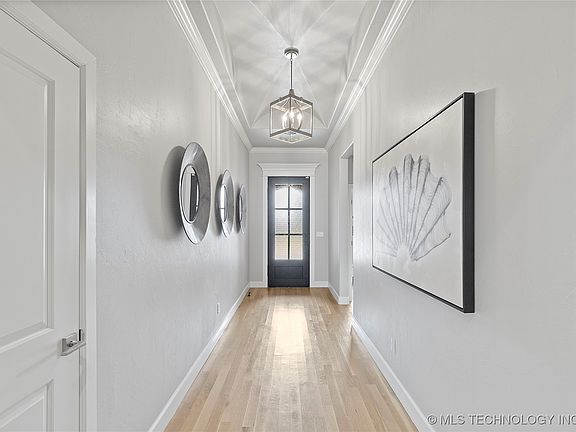 This beautiful home is South of Tulsa Hills in Jenks School District. The premium finishes throughout consist of wood floors, granite countertops, custom built-ins, vaulted/beamed ceilings & a stone fireplace. The split bedroom floor plan with a spacious master suite is a bonus! Laundry room is filled with great amenities and same for the mudroom that has built-in cubbies. The backyard has a stunning covered patio and fenced backyard. Do not miss out on this opportunity!