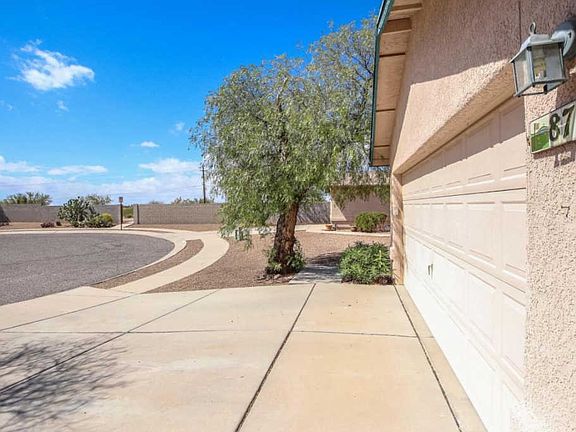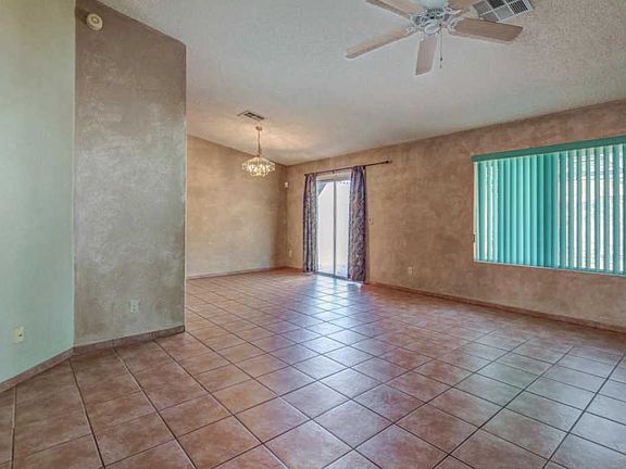 Fantastic single level Home nestled on a cul-de-sac lot. Freshly painted with a neutral color throughout (painted after photos). Beautiful tile floor, soaring ceilings, ceiling fans, window blinds, and patio access from dining area. Spacious open floor plan features SS/black kitchen appliances, and plenty of wood cabinets. Perfect Home for entertaining. Bay window in master retreat with plush carpet and private en suite. Generous size bedrooms, ample closets, and 2 baths. Large backyard with trellis covered patio is a blank canvas for your future desert oasis. Will NOT last!!