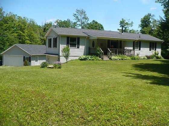VIP pricing. Sellers will consider offers STARTING at $140,000. Buyers should consult with their agent regarding VIP pricing. Wonderful 3 bedroom, 2 full bath home features upper level w/modern eat in kithen, formal dining room, living room, family room w/cathedral ceiling, 2 bedrooms & full bath. Walk out lower level has master bedroom with 2 walk in closets, master bath & great room w/free-standing WBFP. Could make a perfect in-law set up! Large 16x12 deck. 2.5 car attached garage & 2.5 car detached (36'x31') garage, plus storage barn. On 8.4 wooded acres boardering stream w/waterfall!