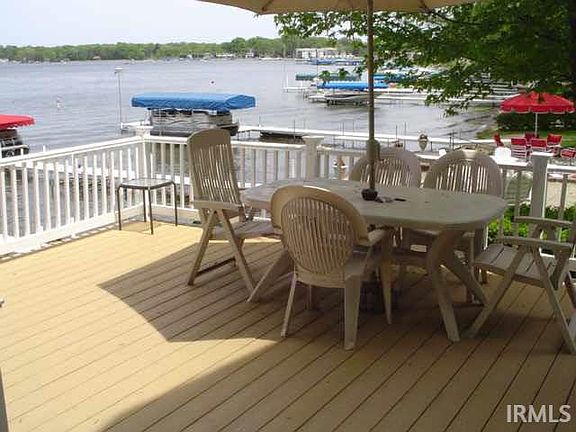 Lakefront Wawasee with a view of the entire length of the lake, from the expansive, maintenance free decking. Good lake bottom. Move in ready - sold mostly furnished. 2 enclosed lakeside porches. Many updates: new water softner, 3 new pier sections, fans & lights, paint. Great decking, sidewalks & landscaping. Priced right! New Paint
