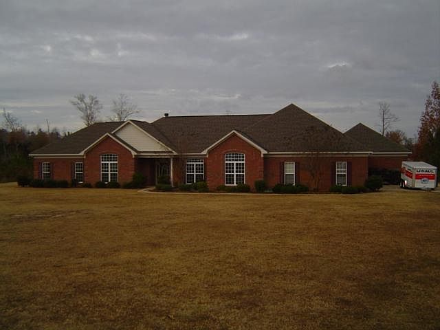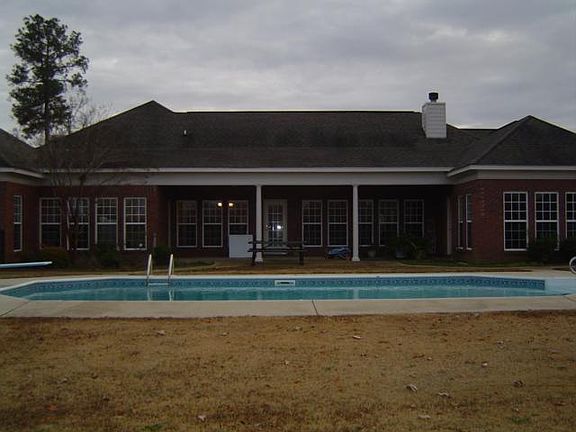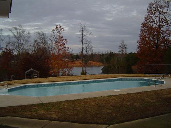 Large home on 5 private acres with pool and lake in Muscogee County. Game/Rec room and great room with a fireplace. Formal dining room. Full eat-in kitchen with a breakfast bar, electric stove, microwave, and dishwasher. Refrigerator needed. Laundry room. Outside shed. 3-car garage. Central H/A. Covered patio and rear fencing. Security system.