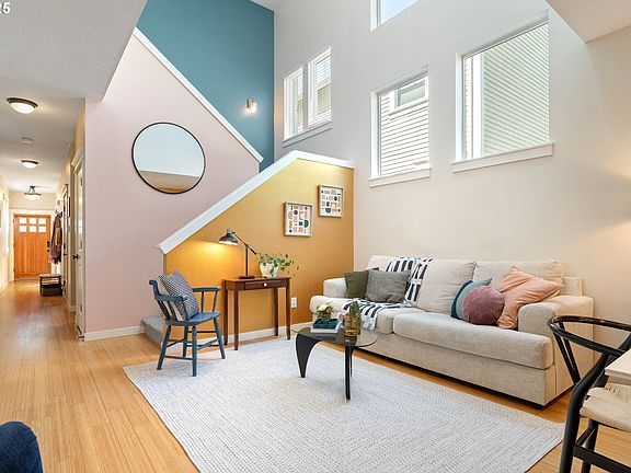OFFER DEADLINE: 5/19 at 12pm. Earth Advantage Certified and a rare perfect 10 Home Energy Score! With a stunning atrium-like main living area and stylishly-updated interior, this is *NOT* your typical Portland tall-skinny build! Located just blocks from Kenton Park and the lively shops and eateries along Denver Avenue—with the MAX Yellow Line conveniently nearby—this modern craftsman is anything but ordinary.The main level opens into an atrium-inspired living area—a delightful architectural gem drenched in natural light, guaranteed to wow every guest. The flexible open layout can be tailored to fit your lifestyle, whether it be hosting epic gatherings or snuggling around the gas fireplace. Tucked away from the main space is a convenient half bath—a thoughtful addition that’s often missing in homes of this style. The kitchen boasts generous storage and counter space with an open peninsula that flows from the dining/living areas. Step out back to a covered deck designed for year-round enjoyment perfect for soaking up the afternoon sun or getting cozy under a heat lamp with a warm beverage on rainy days.The upper level has been revamped throughout with beautifully-updated flooring along with the baths having new sleek quartz countertops and modern fixtures. At the west end of the home awaits the ultimate primary bedroom suite— a spacious retreat with sunset views, vaulted ceilings, double closets, and ensuite bath. In addition to this home’s Earth Advantage Certification, which highlights its premium energy efficient construction, recent upgrades include a high-efficiency furnace, electric heat pump water heater, and owned solar panels that will be paid off by the seller at closing.With its prime Kenton location, thoughtful upgrades, and stunning atrium-inspired living space, this home lets you live in quintessential Portland style while saving on utilities. Come visit in person and scan the QR codes for extra stories and details beyond the MLS! [Home Energy Score = 10. HES Report at https://rpt.greenbuildingregistry.com/hes/OR10148932]