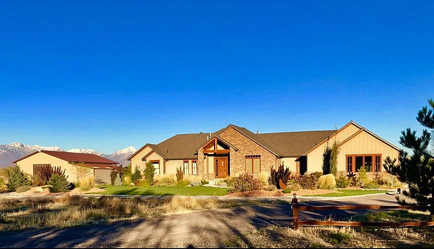 Beautiful Custom Home On 5.25 Acres With Animal Rights, 2 Outbuildings, Orchard, Barn W/ Bathroom, Tack Room, Outdoor Horse Paddocks W/ Custom Built 3-Sided Shelters, Non-Electric Horse Waterers Throughout, Outdoor Riding Arena, Round Pen, And 2 Pastures With Room To Fence Off A 3rd. Stunning Custom Home Features Oversized Main Floor Master Suite With Extra Large Master Bath, Separate Oversized Jetted Tub And Walk-In Shower, His & Her Walk-in Closets, Off Suite Large Laundry Room, Large Open Family Room W/ Grand Windows And View Of The Wasatch Mountain Range, Office/2nd Bedroom/Formal Living room, Wood Burning Fireplace, Central Vac Throughout/Gourmet Kitchen Features Quartz Countertops/Backsplash, Wall Mount Pot Filler, Custom Built-In Hidden Spice Cabinet, Double Ovens Built-In Refrig, Knotty Alder Cabinets, Large Walk-in Pantry, Large Open Walk In Mudroom With Lockers And Storage Area, 3 Car Heated Garage W/ Central Vac. And Enclosed Storage Room. Downstairs Features Large Open Family Room 9 Foot Ceilings, Radiant floor heating Throughout, 2nd Master Bedroom, Full Kitchen, Oversized 2nd Laundry, 2 Additional Bedrooms W/ Walk-In Closets, 3 Bath, Walkout Patio W/ Separate Entrance, Mother-In-Law Apartment/Accessory Apartment Option. Development Features 10 Miles of Horse Riding Trails, Community Park W/ Playground And Pavilion. Upgrades galore... Truly a must see! Brokered And Advertised By: The Real Estate Group Listing Agent: Wendy Komoroski Kristi Hutchings Square Footage Figures Are Provided As A Courtesy Estimate Only And Were Obtained From County Records. Buyer Is Advised To Obtain An Independent Measurement.