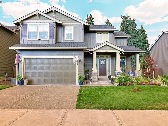 Light & bright custom home in sought after Wilsonville location! Enter to high ceilings & upgraded flooring throughout main level. Grand open floor plan features spacious living room w/ gas fireplace, dining area w/ slider access to backyard, & gourmet kitchen w/ granite counters, pantry, gas range, SS appliances, & large island w/ seating. Escape to the master suite w/ walk-in closet, dual-sink vanity, & soaking tub. Serene backyard w/ spacious patio & nearby amenities. Welcome home!