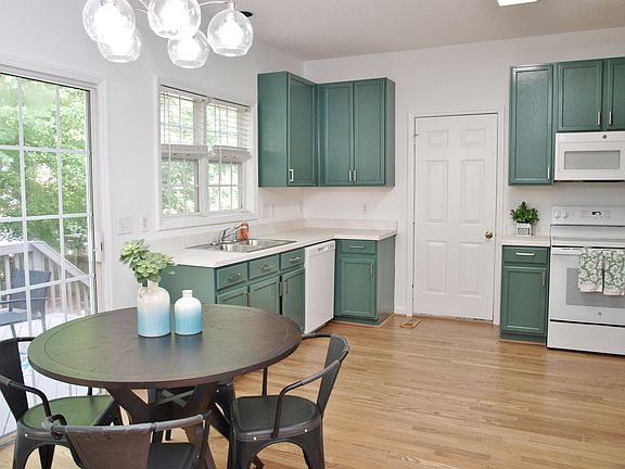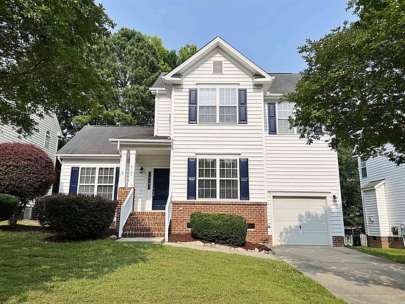 Super cute 3bdrm, 2.5 ba in sought after area! Quiet, cul de sac street. Beautiful refinished hardwoods on entire 1st flr, stair treads & upstairs hallway. Family room with vaulted ceiling and gas fireplace. Whole house new interior white paint. Kitchen with new countertops, new range & new dishwasher. Dining room space would also make a nice home office area. Upstairs owner's suite and 2 secondary bdrms with new LVP flooring. Bathrooms have same LVP flooring as well. No carpet in entire home! Laundry is also conveniently located on the 2nd floor in a utility closet. Home has a nice deck for entertaining & a fenced yard. Home has a new hvac and new roof will be installed very shortly! Enjoy a home that's move in ready! Perfect location to RDU, RTP and Umstead Park.