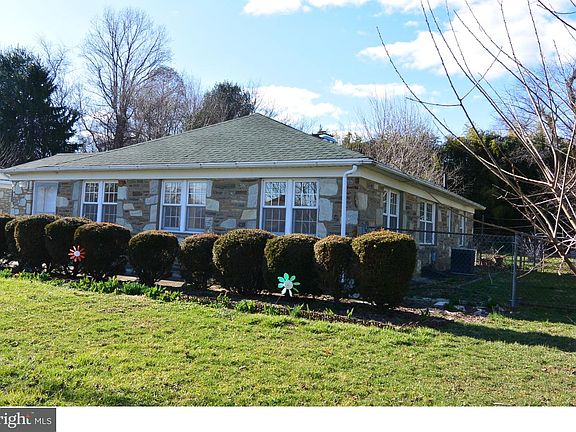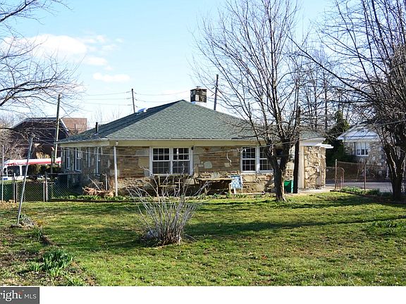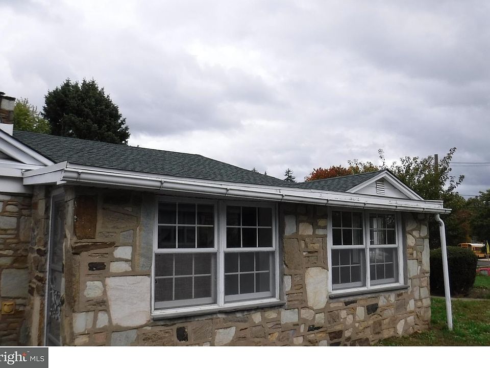 Solid stone single ranch home with a large fenced rear yard. Well Maintained. Detached one car garage plus a large storage room. Front Entrance foyer with a coat closet. Huge living room with lots of light and wide window sills. Gleaming hardwood floors throughout. Dining room with lovely light fixture. Updated kitchen new cabinets and good counter space. Laundry is off the kitchen and has an outside exit to the driveway and yard. Two spotless bedrooms. Extra room which can be a third third bedroom or office and it has a new two piece powder room. Basement that is unfinished but good for storage. Roof on house and garage is NEW. Electric panel is NEW. Fruit trees in the yard and a separate area for your pet. Home is directly across from school. This home is in excellent move in condition and is spotless.