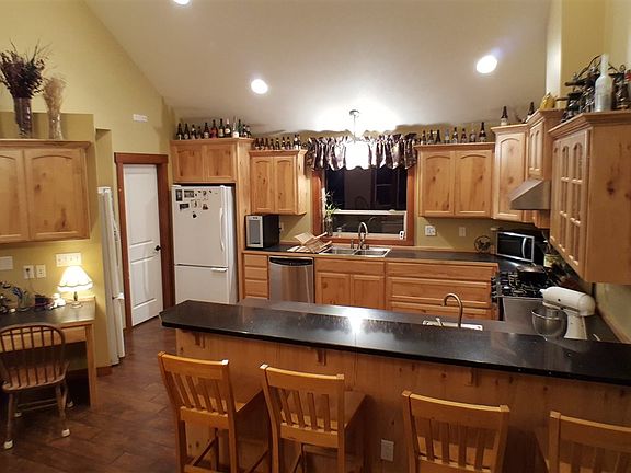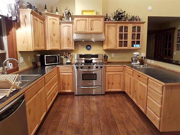 Custom built w/ views from every window! Almost 4000 sq. ft. fully finished, 1 of bedrooms is non-egress. Soaring ceilings & windows to capture natural light and surrounding beauty. Main floor master suite w/ double closets and office area. Huge dinning room. Professional grade kitchen with gas range, 2 full size refrigerators and walk-in pantry. Covered front porch and rear porch to enjoy! Daylight walkout basement plus additional kitchen/entertainment bar. You will enjoy all the custom details!