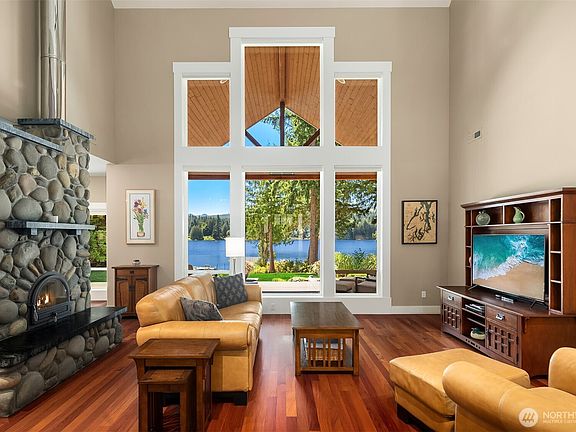 A custom home on Wildcat Lake includes a detached ADU (8723 NW Holly) & 2 large garages, perfect for anyone needing space for hobbies, recreation or multi-generational living. This 2.53-acre estate offers a 5,219 sq ft primary residence with main-floor living, elevator, soapstone countertops, large walkin pantry, Masonry Heater and water views from almost every room. The exterior includes two covered patios, concrete walkways and dock. The exterior includes 2 covered patios, lake shed, rebuilt dock & automatic generator. Enjoy the 2 oversized detached garages. One is 2,800 sf w/ 11'6 ceiling & a 1/2 bathroom. The RV garage has 1,464 sf of parking as well as a 784 sf upstairs. The 968 sf ADU has a 1 bedroom, 1 bath w/laundry & an office.