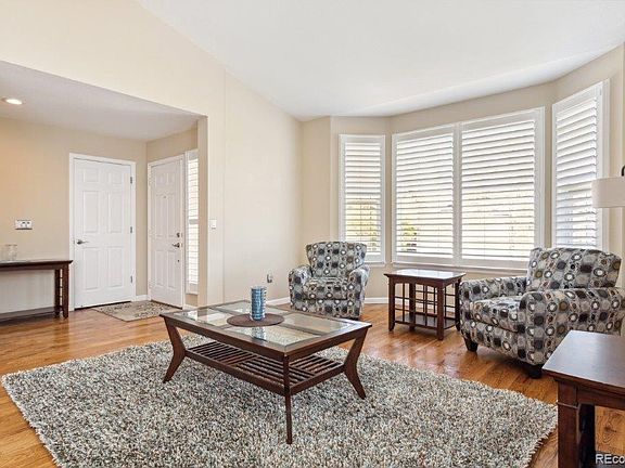 Beautifully updated home ideally located on a quiet cul-de-sac. Lovely paver walkway brings you to the front door. Natural light pours in many large windows creating a warm & welcoming feeling. Open floor plan is great for entertaining & everyday living. Gleaming hardwood flooring on main level. Plantation shutters with dual open/close feature & 6 panel doors throughout. Several upgraded ceiling fan light fixtures. Vaulted Living Room is graced by bay window & Dining Room has 11’ ceiling. Gourmet Dream Kitchen has abundance of beautiful knotty alder cabinetry & granite counter space, including large custom designed island. Stainless steel appliances, pantry & lots of canned “task” lighting. Stunning 3 sided stacked stone fireplace is enjoyed while in kitchen and adjoining vaulted Family Room. Luxurious Main Floor Primary Suite has vaulted ceiling & 3 large windows. Gorgeous 5 piece bath features dual sink granite topped vanity, deep soaking tub, large shower with bench & walk-in closet. Convenient main floor laundry room - newer Samsung washer & dryer included. Open staircase, with stained woodwork complementing the hardwood flooring, leads upstairs. 2 bedrooms nicely accommodated by a Jack and Jill bath with granite counters & tile flooring. Spacious Loft Area is perfect for a home office or study area. Extensive future living space in full basement. 4 egress windows, rough-in plumbing, additional electrical outlets. Water softener, humidifier, radon mitigation system. Updated furnace & A/C. Outdoor entertaining will be a pleasure on the lovely extended patio. Pergola with power awning + 3 shades provide privacy & protection from the weather. Newly painted exterior & driveway. Garage has new insulated garage door & opener, epoxy flooring, walls insulated/dry walled/painted. You will love location of home ~ walking distance to Cresthill Middle School & HR High School. Parks, Rec Center + abundant shopping & restaurants nearby. This is Colorado Living at its Best!
