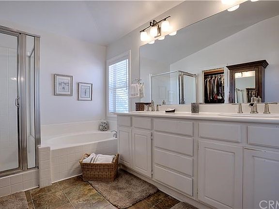 Welcome home to this beautifully remodeled 4 bedroom, 3 bath home with a possible 5th bedroom downstairs, that is currently an office with a full bath. The kitchen has been completely remodeled and customized with large white Quartz center island that seats four, double sinks, additional storage and pendant lighting. Stunning black Quartz countertops, white cabinetry, custom pantry and stainless steel appliances. The kitchen is open to the dining room with a cozy fireplace and an amazing backyard with mountain and city views. New wood flooring throughout the lower level, on the stairs and into the upstairs Bonus room with a built in media center and 3 additional bedrooms and full laundry room. The master suite has cathedral ceilings, a sitting area, walk-in custom closets, dual sinks and a separate shower and bathtub. The backyard boosts a custom fireplace, brand new BBQ and island, new landscape & stone hardscape. The private backyard is perfect for entertaining amongst the breathtaking views and one of the few lots in the community with no neighbors directly behind you. Please visit my website for a video tour. www.AmenPropertyGroup.com DeAnne Amen Jakobsen Surterre Properties 949.212.8699