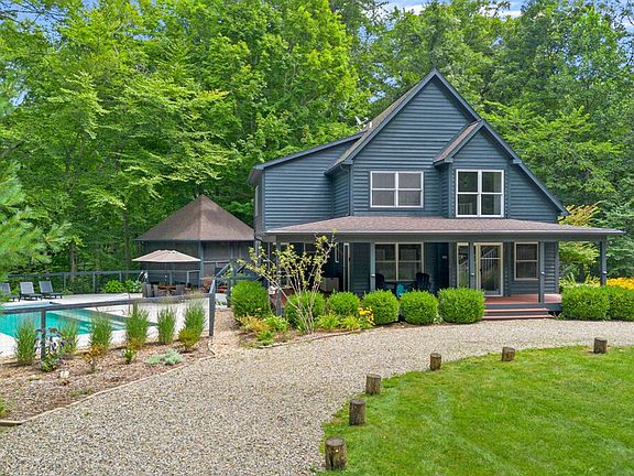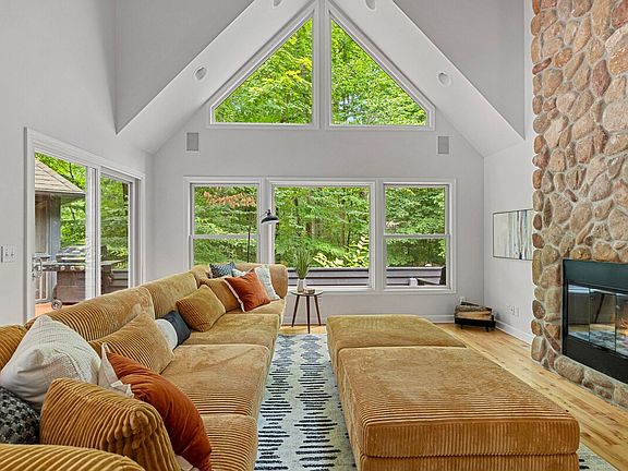 Set on a 1.25-acre wooded lot less than two miles from Townline Beach, this luxurious home is a vacation dream. The open design of the living room, dining room, and kitchen, high ceilings, majestic stone fireplace, and natural light draw you in. Elegant furnishings and stylish decor, plus a pool, huge deck, and screened gazebo invite you to relax. Gather around the kitchen's large center island or breakfast nook for coffee and relax by the outdoor fireplace under the stars. Stepping inside Gray Haven, you will immediately relax and breathe easy, given the spacious atmosphere created by the vaulted ceilings and magnificent views of the surrounding woods, the pool, and large deck through the home's expansive windows. Enjoy a glass of your favorite beverage while unwinding in front of a fire in the magnificent stone fireplace or cozy up to a movie on the living room's flat-screen TV. The roomy kitchen features high-end appliances for making scrumptious vacation meals, as well as a huge center island that is a popular gathering spot for morning coffee. There's a sweet dining area that looks out onto the lush outdoor surroundings. If you're in the mood for some "me time" or prefer chilling with a book, there's a cushy, well-lit spot upstairs that'll do nicely. All four bedrooms are spacious and stylishly appointed, with plenty of storage, great natural light, and top-quality bedding and linens to ensure a sound sleep. The main floor's primary bedroom is beautifully designed with an elegant Asian motif and has an ensuite bathroom and walk-in closet. Each of the three bathrooms comes with deluxe fixtures and finishes, some featuring walk-in showers, and others offering shower-soaker tub combos. The primary bathroom has a double vanity and a walk-in stone-tile shower with a rain showerhead. One bathroom also includes a washer-dryer combo. We welcome up to 1 dog at this home at no additional charge. A non-refundable Accidental Damage Waiver is included with your reservation, covering accidental damage or loss to the rental property caused by you or members of your party, up to a maximum of $2,000. This plan does not cover intentional acts, gross negligence, or willful misconduct. Besides being near the majestic, crystalline sand beaches of Lake Michigan and great spots to eat, drink, and be merry in Union Pier, as well as its stylish boutiques and quaint antique shops, you're also super-close to the many popular restaurants, coffee shops, distinguished art galleries, and unique shops of downtown New Buffalo. Enjoy the countless activities afforded by being a stone's throw from the region's largest recreational harborincluding boat, jet-ski, kayak, paddleboard, and other watercraft rentals, as well as fishing expeditions and day or evening cruisesand all sorts of woodland, lake, and riverside parks with hiking and biking trails. Warren Dunes State Park is close by, with its 2,000 acres of amazing sand dunes, gorgeous beachfront, wetland trails, and extraordinary birdwatching. Many guests also relish visiting New Buffalo's Oselka Park, which has baseball fields, playground equipment, and tennis courts. Being centrally located, there are plenty of nearby fun activities to keep you busy during your vacation, including multiple public Lake Michigan beaches, farmers markets, seasonal festivals, local award-winning breweries, local award-winning wineries and wine tours, and golf courses. The minimum age to rent this home is 25. Out of respect for our staff and their families, we do not permit check-ins or check-outs on Thanksgiving Day and Christmas Day. The pool is open from mid-May, weather permitting, to September 30th.